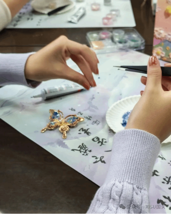 女教职工们欢聚一堂,以传统工艺为媒,亲手制作独一无二的螺钿胸针,为自己献上了一份别具意义的节日礼物。